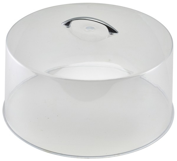 30.5cm clear Polystyrene cake cover with integrated metal handle for easy lifting. H:6.3"/16cm (Max. cake height 5.5"/14cm).