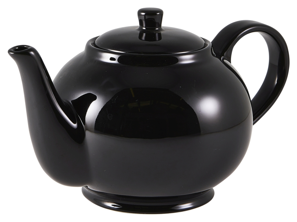 85cl black vitrified porcelain round teapot. 8.5x5.1"/21.5x13cm H:4.9"/12.5cm