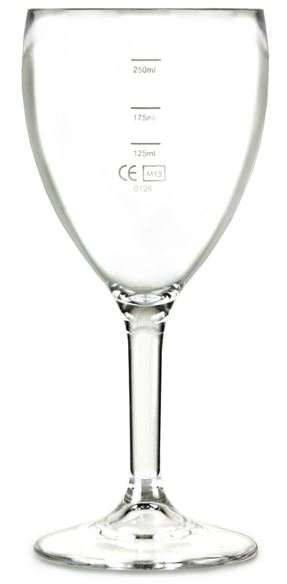 325ml premium polycarbonate reusable wine glass lined at 125ml, 175ml & 250ml CE.