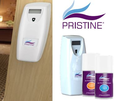 Starter pack includes dispenser and choice of fragrances. With a sleek and flexible design, the Air Fresh dispenser works in a variety of locations with flexible and easy to use programming options. The dispenser is fully programmable with a choice of 6, 8 or 12 refills per year and a choice of 5, 6 or 7 days of operation. Multiple program options combined with start and stop times ensures fragrance delivery during key hours of opening and operations. A quick programming button allows for a 24/7 fragrance for 30/45 or 60 days. I.P.E™ facility enables the user to program up to three periods per day of enhanced fragrance delivery. Required 2 x C cell batteries (not supplied).