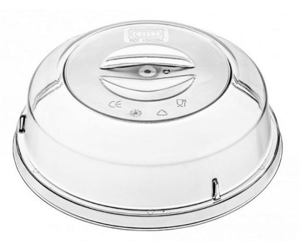 The lid is compatible with a 21.5cm plate. It is a perfect solution for keeping the ingredients fresher for longer. In addition, the lid can provide extra protection during meal service to keep the food warmer. Also used as a cover for transporting plated food for room service etc.