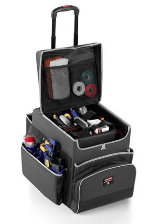 - SECURE STICK GOODS with heavy duty strap and large front pocket that will hold a Flexible Flat Mop or Sweeper.