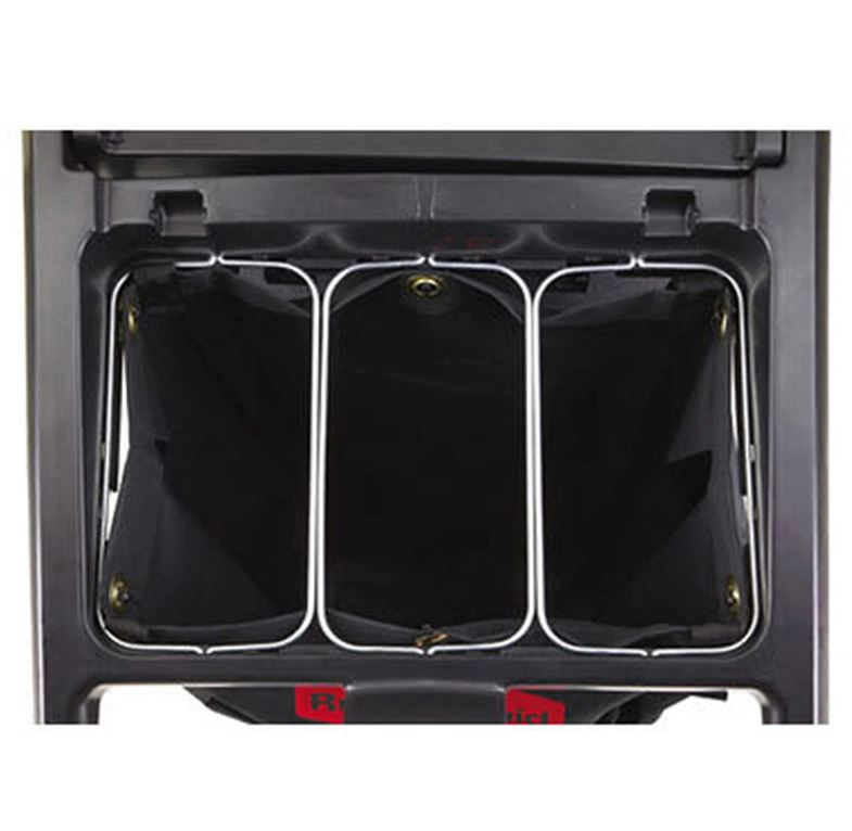 The Rubbermaid Commerical Executive Triple Wire Bag Waste Holders provide seperation of waste, recycling, and dirty cleaning cloths and pads for cleaning carts.