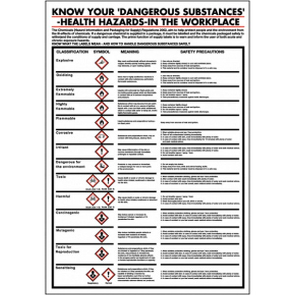 600X420MM COSHH POSTER RIGID "KNOW YOUR DANGEROUS SUBST."