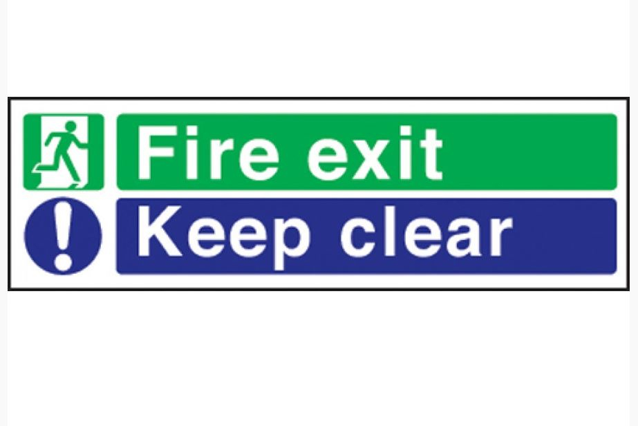 FIRE EXIT KEEP CLEAR SIGN 150X450MM S/A VINYL