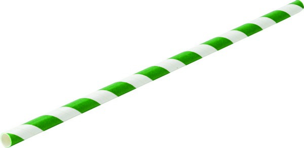 Paper striped green biodegradable straw, 8" with 6mm bore