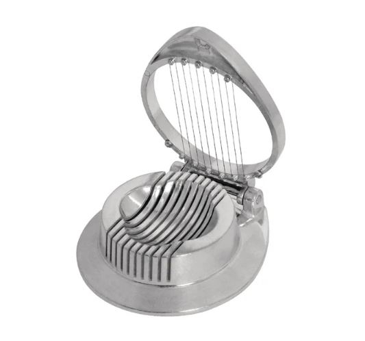Vogue Duplex egg slicer. Constructed from high quality aluminium, the slicer cuts through boiled eggs with minimal effort. The design of the utensil also produces perfect, even slices every time. Incredibly robust, durable and reliable, the slicer is able to withstand the demands of any busy commercial kitchen. It is not dishwasher safe.