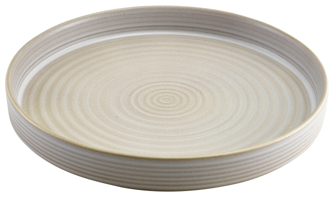 26cm beige/white stoneware presentation plate. H:1.3"/3.3cm