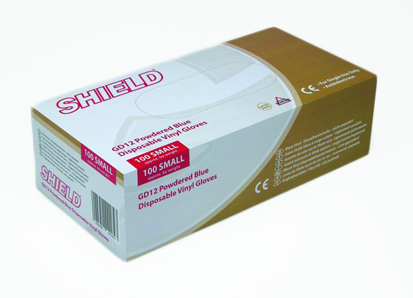 Blue Vinyl powdered disposable gloves manufactured in accordance with European PPE Directive 89/686/EEC and tested to European Standards EN420 and EN374. Gloves intended for minimal risk applications and designed to offer sensitivity and improved feel as well as a dependable and economical latex free alternative.