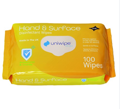 UNIWIPE HAND & SURFACE WIPES X100 EN1276,EN13727,EN14476